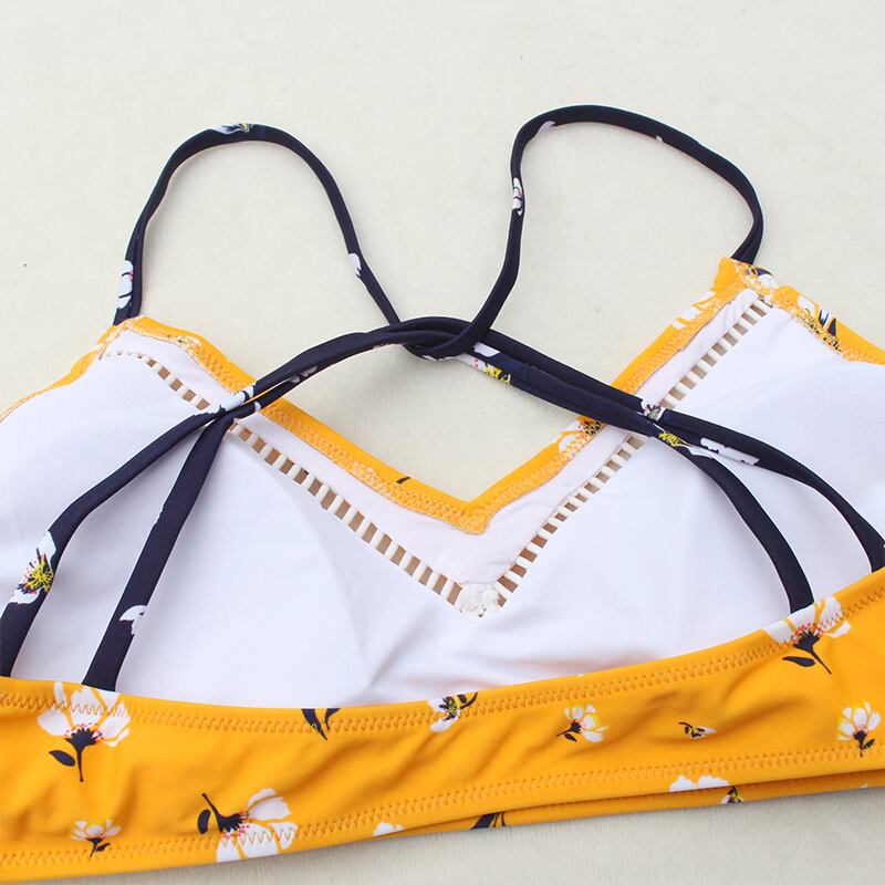 レディース 水着 ビキニ セットアップ イエロー ローライズ 小花柄 レトロ ローライズ アメリカン Vネック セクシー ブラック